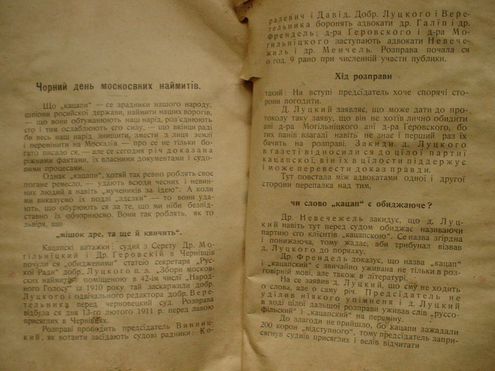 Как видите, кацапами сначала называли русофилов-русинов Галичины тогда: