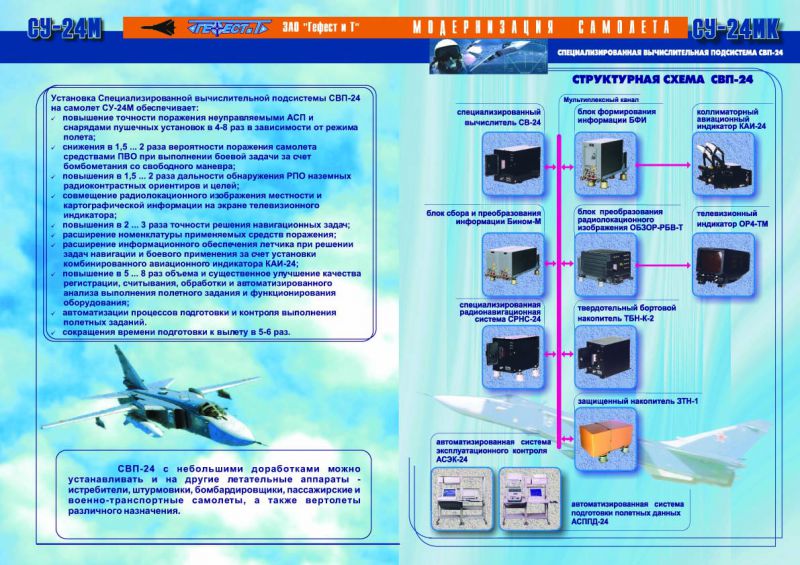 Уже подтверждено, что СВП-24 установлены на российских Су-24, Су-25, Ту-22М3, вертолетах Ка-50 и Ка-52, заслуженных МИГ-27, и даже на тренировочном L-39. То есть, она может быть установлена практически на всех вертолетах и самолетах, от больших бомбардировщиков до маленьких учебных самолетов. Я уверен, что Ми-24 и Ми-35М в Латакии тоже оборудованы этой системой.