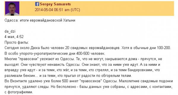 Напомню, в Одессе были столкновения боевиков сторонников и противников федерализации.
