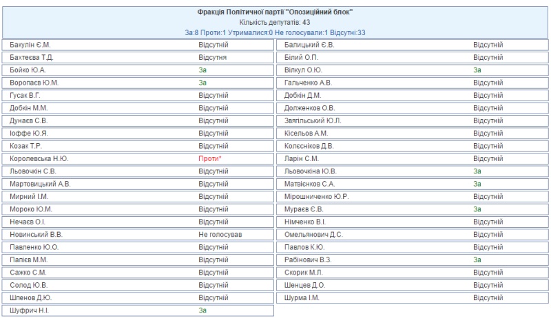 16 февраля в 19-50 депутаты Верховной Рады признали работу правительства неудовлетворительной. «За» 247, из них - 26 голосов дал Оппозиционный блок.