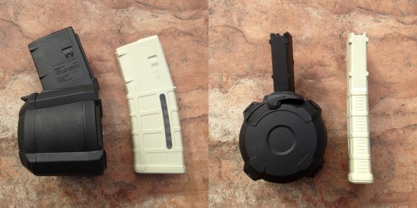 Из относительно свежих разработок можно упомянуть американский барабанный магазин PMAG D-60 под 60 патронов 5,56 мм НАТО. Его пустой вес составляет примерно 570 грамм, а розничная цена — 120 долларов. Это, соответственно, примерно в четыре и восемь раз больше, чем для 30-зарядных коробчатых магазинов того же производителя.