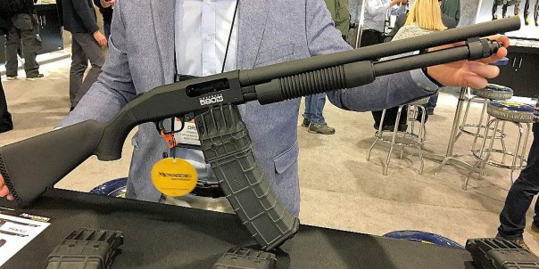 Разумеется, прежде всего речь идёт о Mossberg 590 M ® Mag-Fed: конструкторы компании сумели преодолеть значительную часть сложностей, связанных с надёжной подачей. Покупателям предлагаются двухрядные магазины ёмкостью пять, десять, 15 и 20 патронов; в сборе такое изделие выглядит поистине устрашающе.