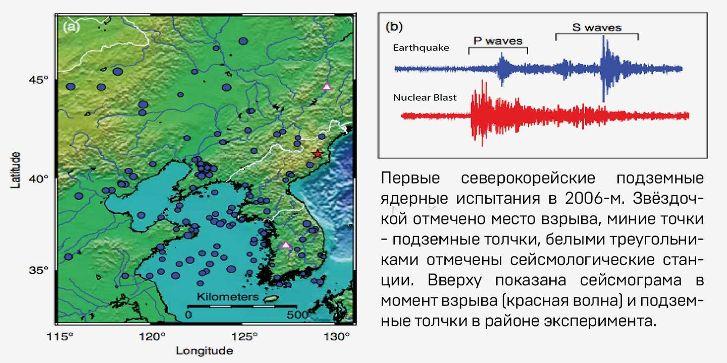 Даже первый ядерный взрыв в КНДР был сразу замечен сейсмостанциями — хотя, по многим оценкам, его мощность составила всего лишь половину килотонны. К тому же он был подземным, что особенно хорошо считывается сейсмографами.