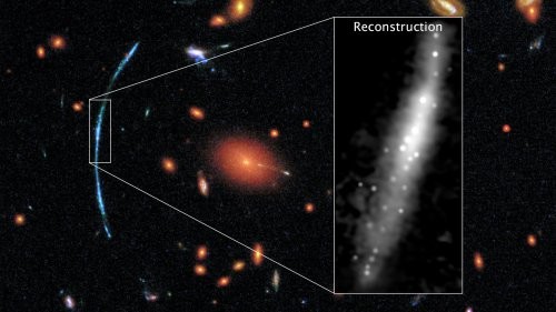 Астрономы сделали открытие, благодаря известному эффекту гравитационной линзы, когда свет от далекого космического объекта преломляется и фокусируется под воздействием гравитации находящегося на его пути промежуточного массивного космического объекта, галактического кластера SDSS J1110+6459 в данном случае. Эта гравитационная линза позволила сразу увеличить размер изображения далекой галактики в 30 раз, что дало астрономам возможность рассмотреть даже отдельные звезды. Естественно, что гравитационная линза не дает сразу высококачественного изображения, для компенсации гравитационных искажений ученым пришлось использовать сложную математическую обработку на компьютере.