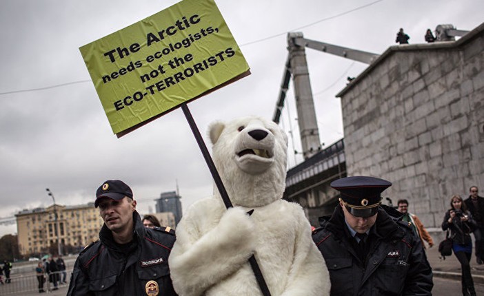 Акция в поддержку арестованных в Мурманске активистов Greenpeace