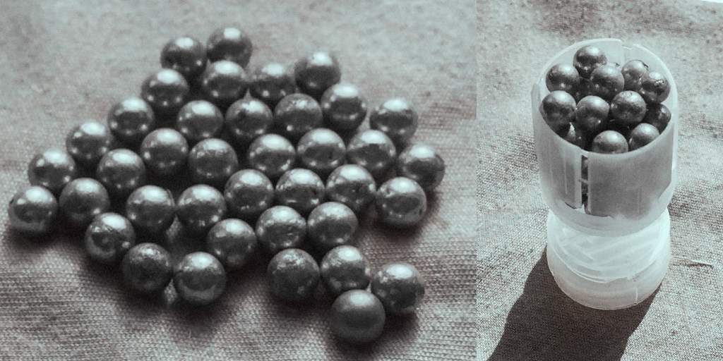 Использование чистого драгметалла непрактично — лучше посеребрённая дробь. Правда, покрыть свинец драгметаллом сложнее — надо предварительно нанести на него слой меди. Для таких целей лучше использовать готовые омеднённые свинцовые шарики, применяемые для стрельбы из пневматического оружия.