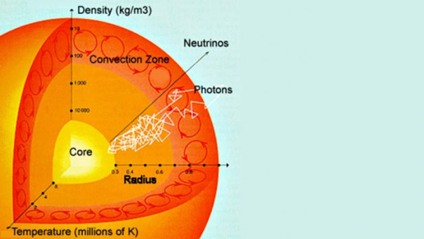 Родившись в ядре Солнца, нейтрино тратит не более пары секунд, чтобы подняться к поверхности. Ещё восемь минут — чтобы достигнуть Земли.
