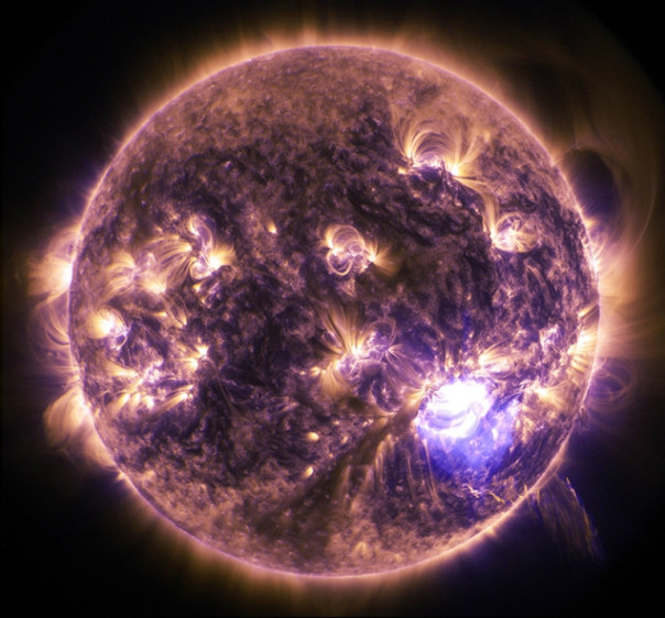 На фото: солнечная вспышка — это мощный всплеск радиации. Вредное излучение не может пройти через атмосферу Земли и физически повлиять на людей на Земле, однако, если оно достаточно интенсивное, оно может нарушить атмосферу в слое, по которому распространяются сигналы GPS и связи