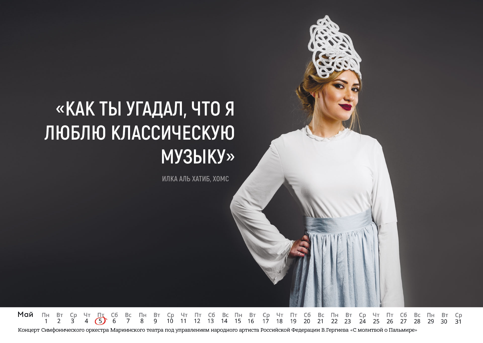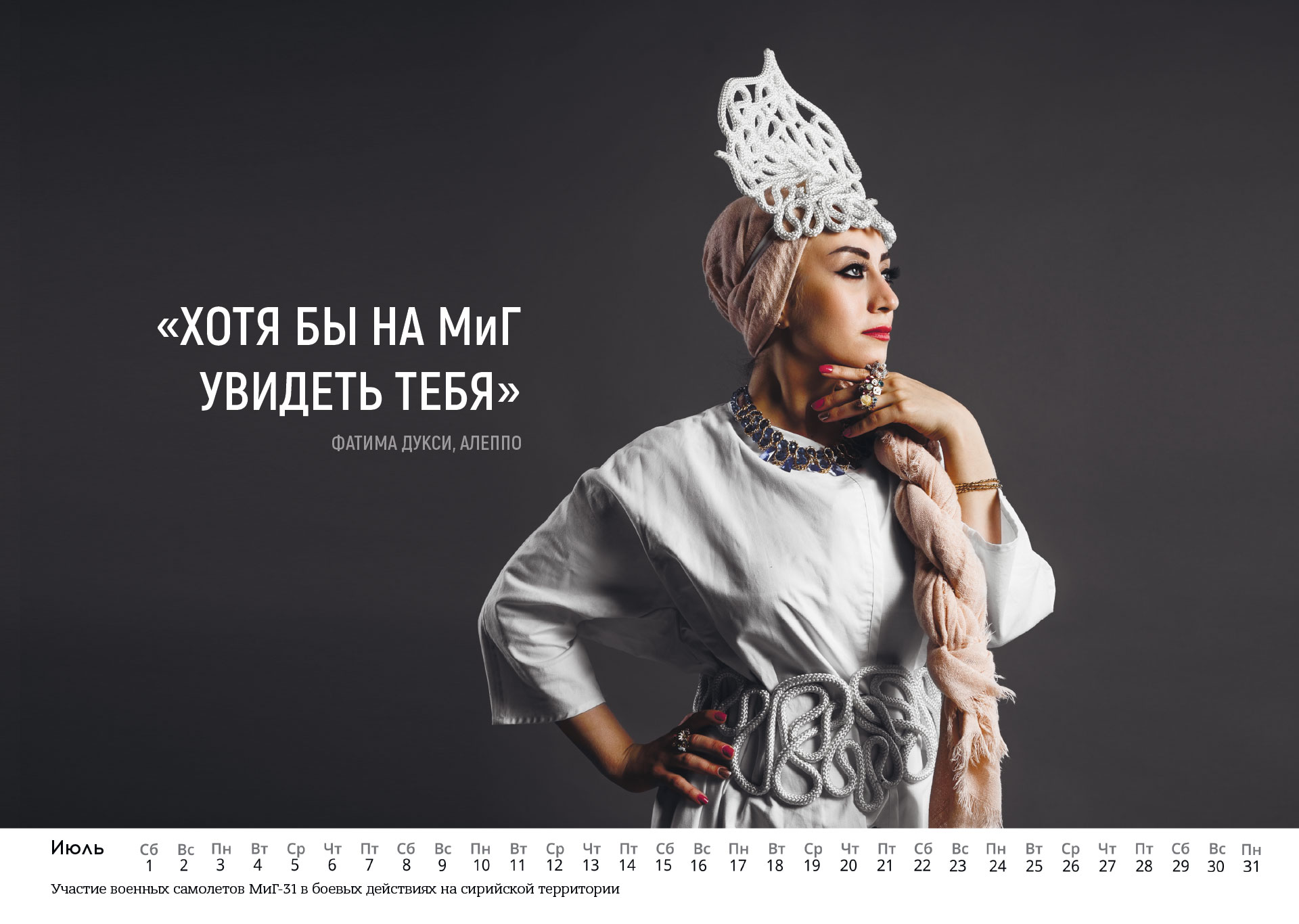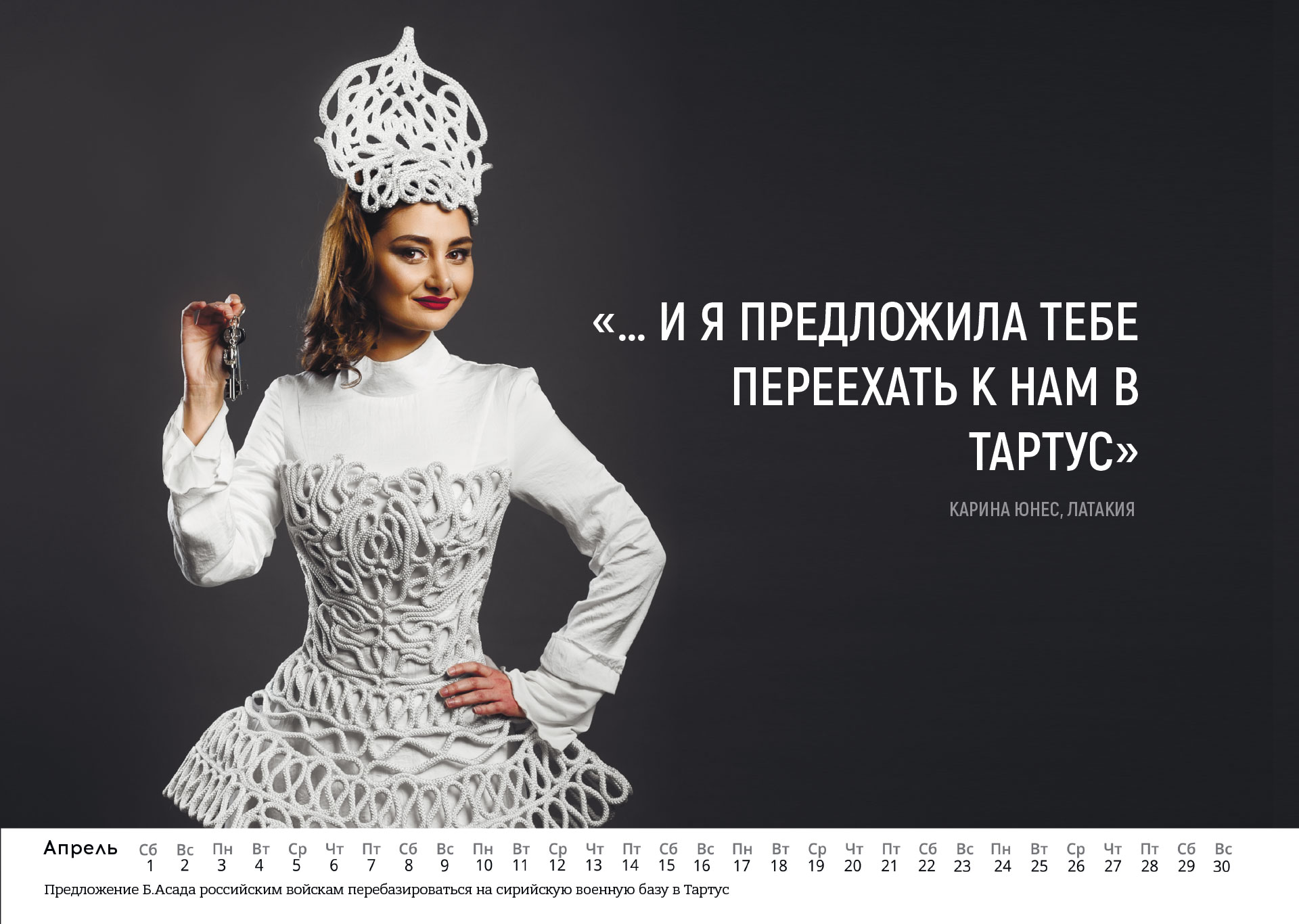 «В каждом месяце сирийская девушка говорит от первого лица российскому солдату о том, что у неё на сердце. Вместо традиционных и привычных нам праздничных дней в календаре отмечены события, связанные с важнейшими позитивными изменениями последних месяцев на сирийской территории», — говорится в пресс-релизе организаторов проекта, находящемся в распоряжении RT.