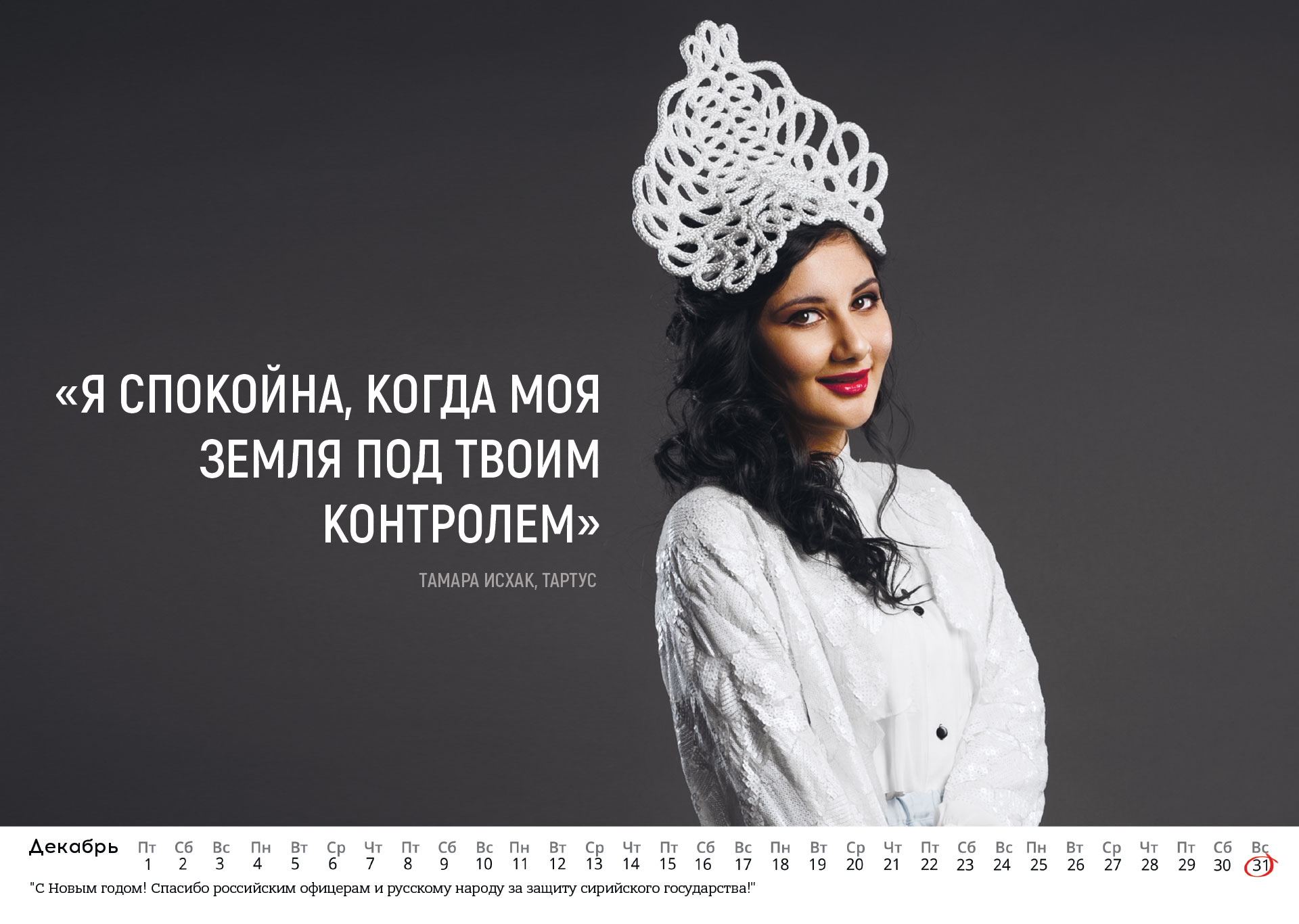 Молодёжный проект «Школа современного искусства» выпустил календарь-поздравление российским военным от 12 сирийских девушек.