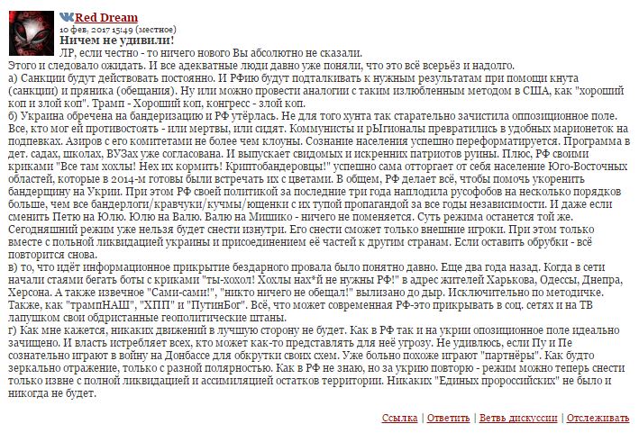 В общем, просто концентрат "Россия должна" и Россия виновата". А шо, спросите вы, жители территории? А их-то за шо? Источник
