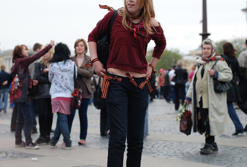 Нацепить «георгиевскую ленточку» на свою одежду везде, где можно – это долбое*изм, а не «выражение уважения символу мужества, воинской храбрости и победы».