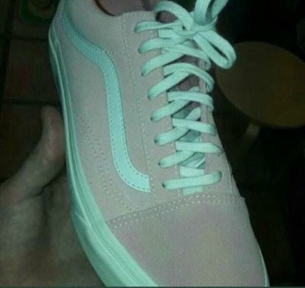 Англичанка купила кроссовки. Она думала, что кроссовки серого цвета с "мятного" цвета шнурками, а подруга сказала, что они розовые с белыми шнурками.