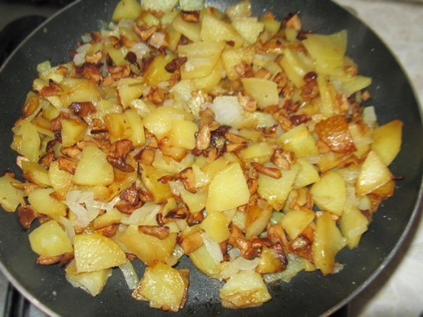 С картошкой, или так, в сметане. В русской печи. На мелкой (обязательно!) сковороде. Вкус, я вам скажу, списифический!