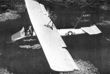 в 1956 году первый полёт первого прототипа экспериментального резинового надувного самолёта «GA-33» «Inflatoplane» (N39635) (компания Goodyear, США). Появление концепции резинового надувного самолёта можно отнести к первым экспериментам с надувным резиновым планером, построенным конструктором Taylor McDaniel в 1930-х. В 1956 армия США заказала предприятию «Goodyea» проект надувного спасательного самолёта, который мог бы сбрасываться с воздуха способом парашютного десантирования в жёстком контейнере объёмом 1,25 кубометра, и приводиться в готовность на земле за несколько минут. Проект был завершен за двенадцать недель. Весь планер представляет собой наддутые до жесткости резиновые оболочки.