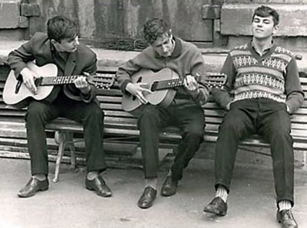Молодежь Углекаменска слушает музыку во дворе, 1973 год