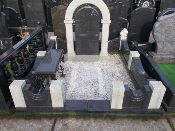 - Классика. Классическими являются памятники из черного гранита, которые могут сочетаться с деталями из белого камня.