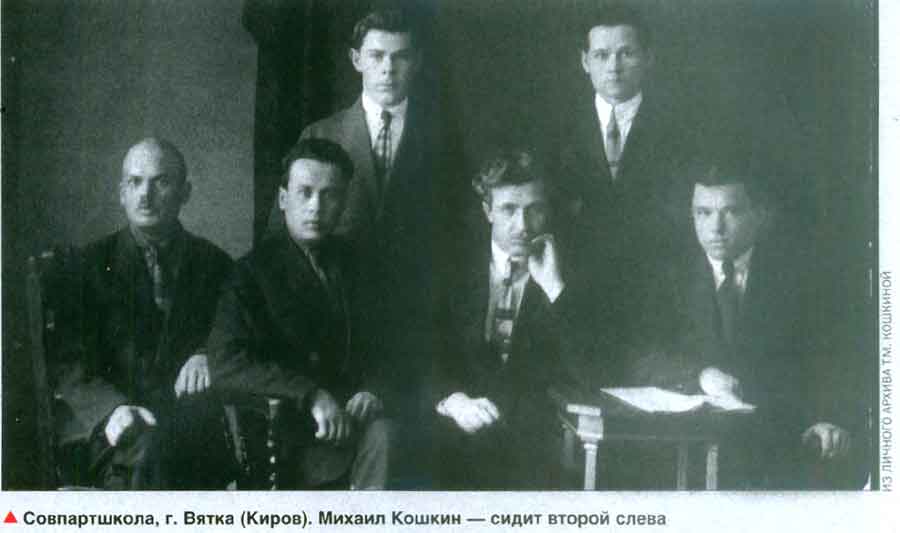 Михаил Кошкин родился в 1898 году в деревне Брынчаги Ярославской губернии, мальчишкой после смерти отца пошел работать… Воевал в гражданскую. Работая в Совпартшколе г. Вятки (Киров), он встретил Веру Катаеву, они поженились. Вера Николаевна поехала с ним в Ленинград, где Михаил Ильич учился в Индустриальном институте. У них была комната в общежитии, маленькая дочь Лиза, потом родилась Тамара. По вечерам Михаил зубрил английский, Вера смеялась. Брат Веры Николаевны работал на Ленфильме, и семья Кошкиных пересмотрела все киноновинки, зачастую на закрытых ночных просмотрах.