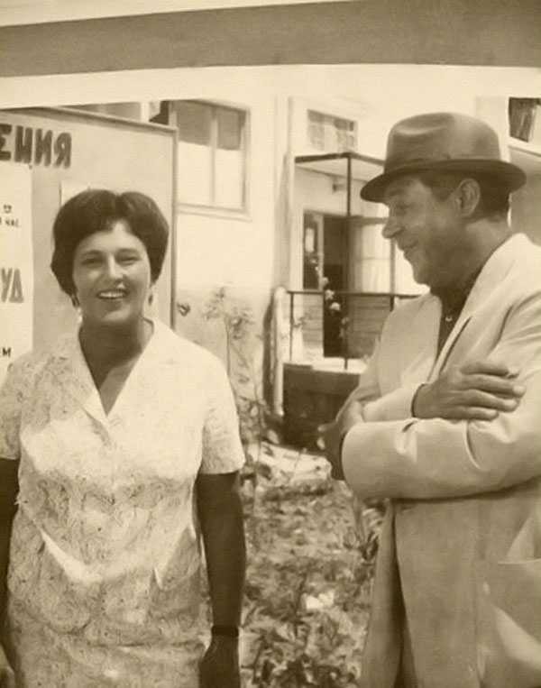 Нонна Мордюкова и Вячеслав Тихонов с космическими собаками Белкой и Стрелкой