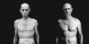 Так выглядел один из участников сразу по завершению эксперимента ( -27 кг) – слева и спустя некоторое время после того, как чуть-чуть отъелся (справа).