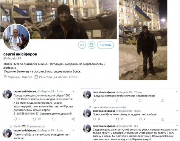 Теперь Сережа Анисифоров - одесский голодный бомж. Зато с героическим майданным прошлым, плюс официально беженец. Ну, главное, что не в России. В демократической Украине и голодается легче.