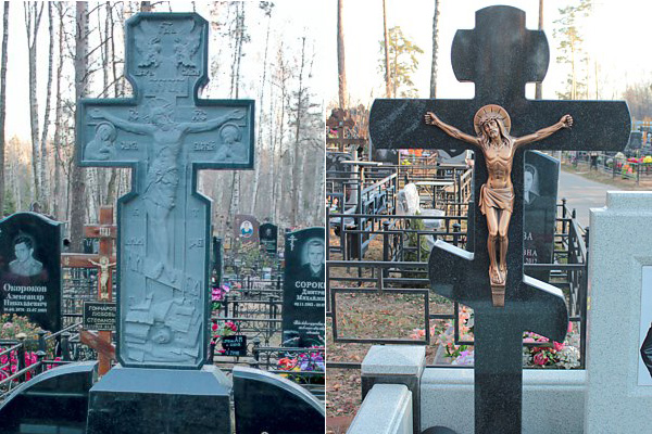 Крест выполненный на основании из гранита, считается одним из самых сложных по выполнению видом памятника. Если считать и грузную тумбу-подставку, которая выполняет роль основания креста, то общая высота памятника может достигать полутора метров. Создатели памятников обычно учитывают традиционные православные принципы России, и изготавливают кресты в соответствии с православными канонами. Однако, если в этом есть необходимость, мастера изготавливают и католические, и армянские и кельтские кресты.