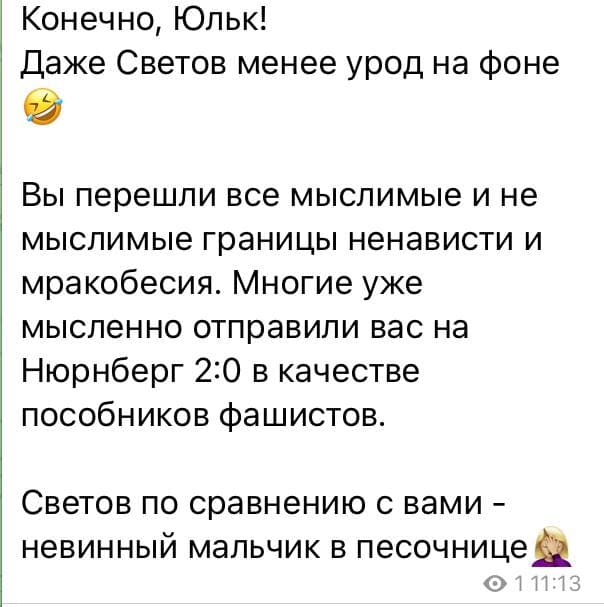 Антиваксеры, вступив на тропу войны со мной, уже даже не то, что педофила Светова, украинских карателей защищать готовы. Тех самых, которые каждый день Донбасс утюжат и детей калечат.