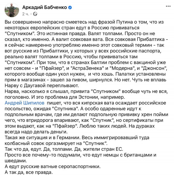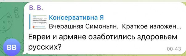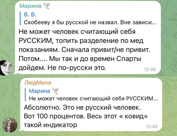 Я подозревала, что рано или поздно антиваксеры, как и положено истинным арийцам (зачеркнуто) радикальным консерваторам, начнут делить народ на русских и не русских. Ждать пришлось недолго.