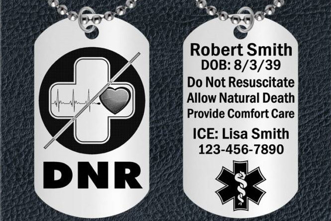 На этом кулоне, помимо требования не реанимировать, указаны данные человека и номер телефона лица, с которым следует связаться в случае смерти носителя: