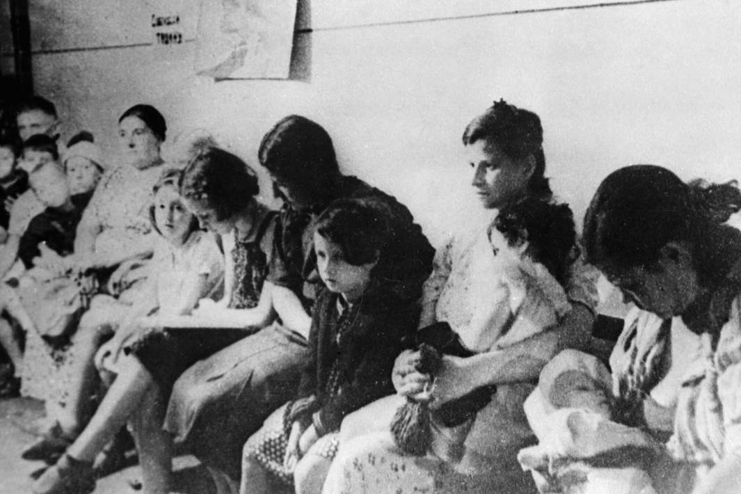 Жители Ленинграда прячутся в бомбоубежищах во время воздушной тревоги