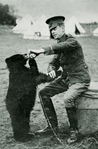 История Винни-Пуха началась с реальной медведицы Виннипег. Будучи медвежонком Виннипег являлась талисманом Канадского армейского ветеринарного корпуса. На фото: Виннипег в 1914 году.