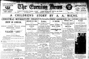 После этого Милн решил написать серию рассказов о Винни-Пухе, любимой игрушке сына, и посвятил их своей умершей жене Дороти. Первый рассказ был опубликован в 24 декабря 1925 года в London Evening News.