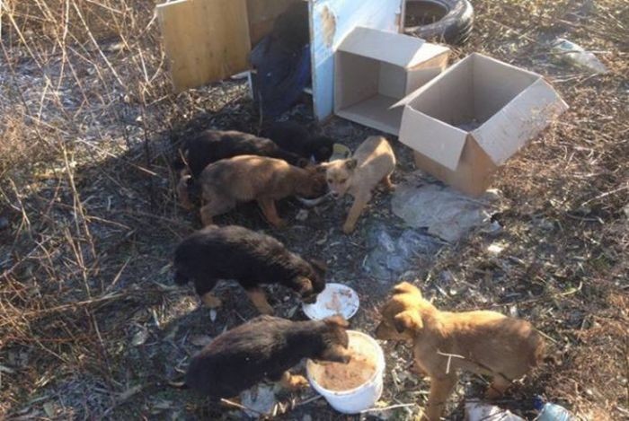 В Анапе кот спас от голодной смерти шестерых щенков, оставшихся без мамы. Логовом животных стал ворох старых тряпок в лесополосе у дороги. Здесь щенки дожидались своего приемного отца, кормившего их… мышами.