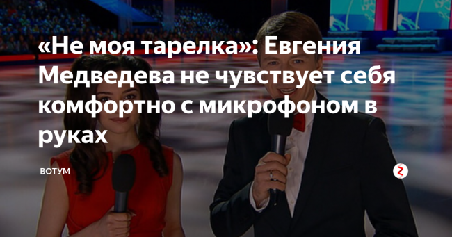 «Это еще одна популярная тема в интернете: если Медведева появилась на ТВ, значит, она ушла из спорта. Женя Медведева ниоткуда не уходила, она до сих пор залечивает травму, которая беспокоила её на протяжении всего года. Теперь человеку сидеть дома и ничего не делать? Ей предложили попробовать себя в роли ведущей телепроекта на Первом канале. Она согласилась», — цитирует Ягудина «Телепрограмма».