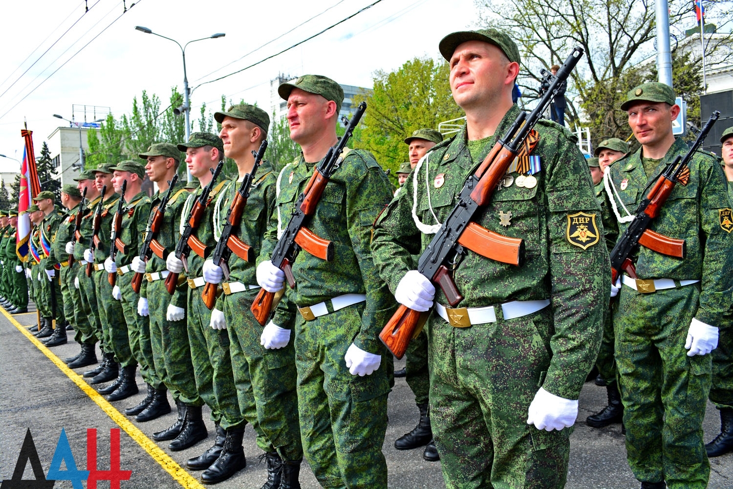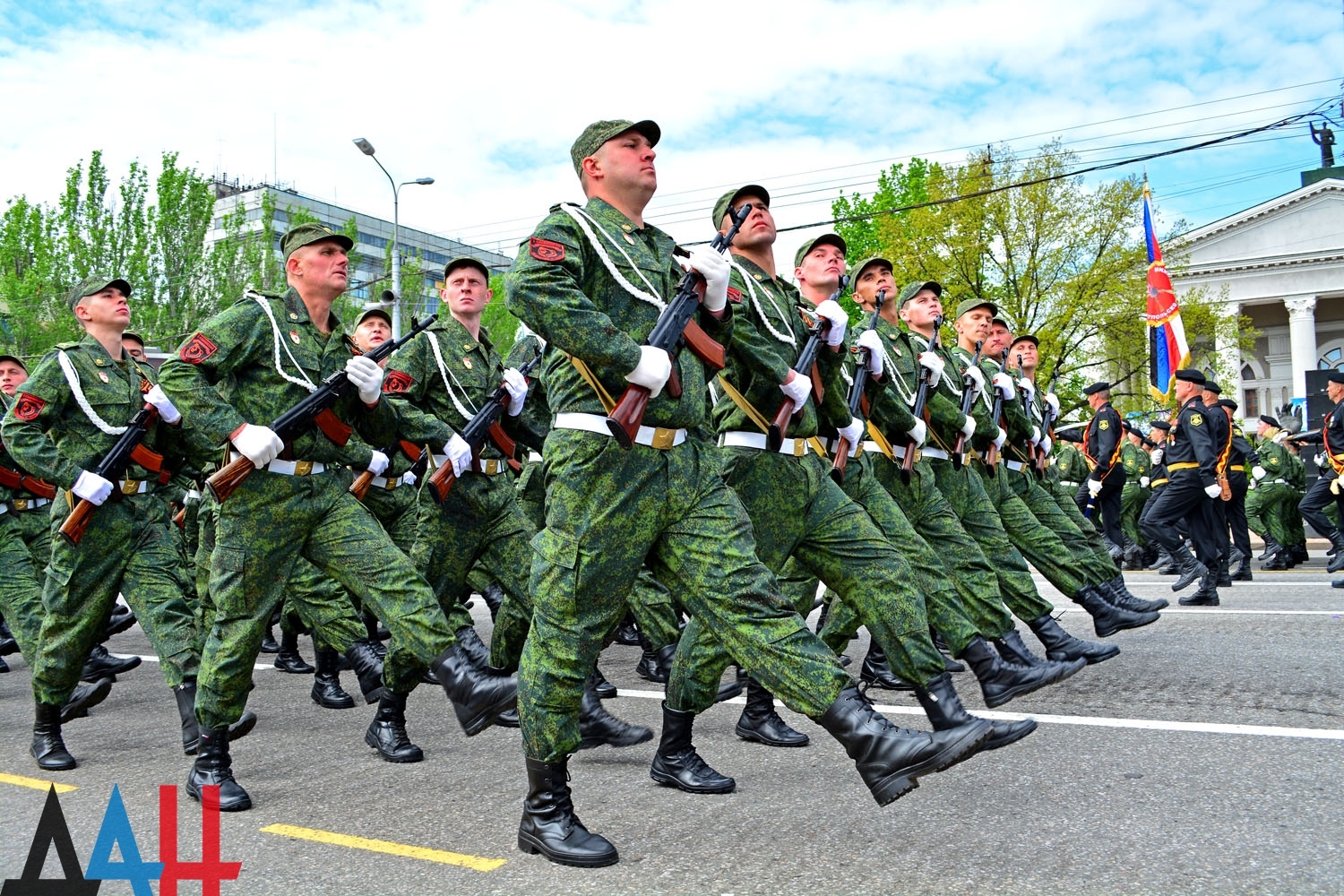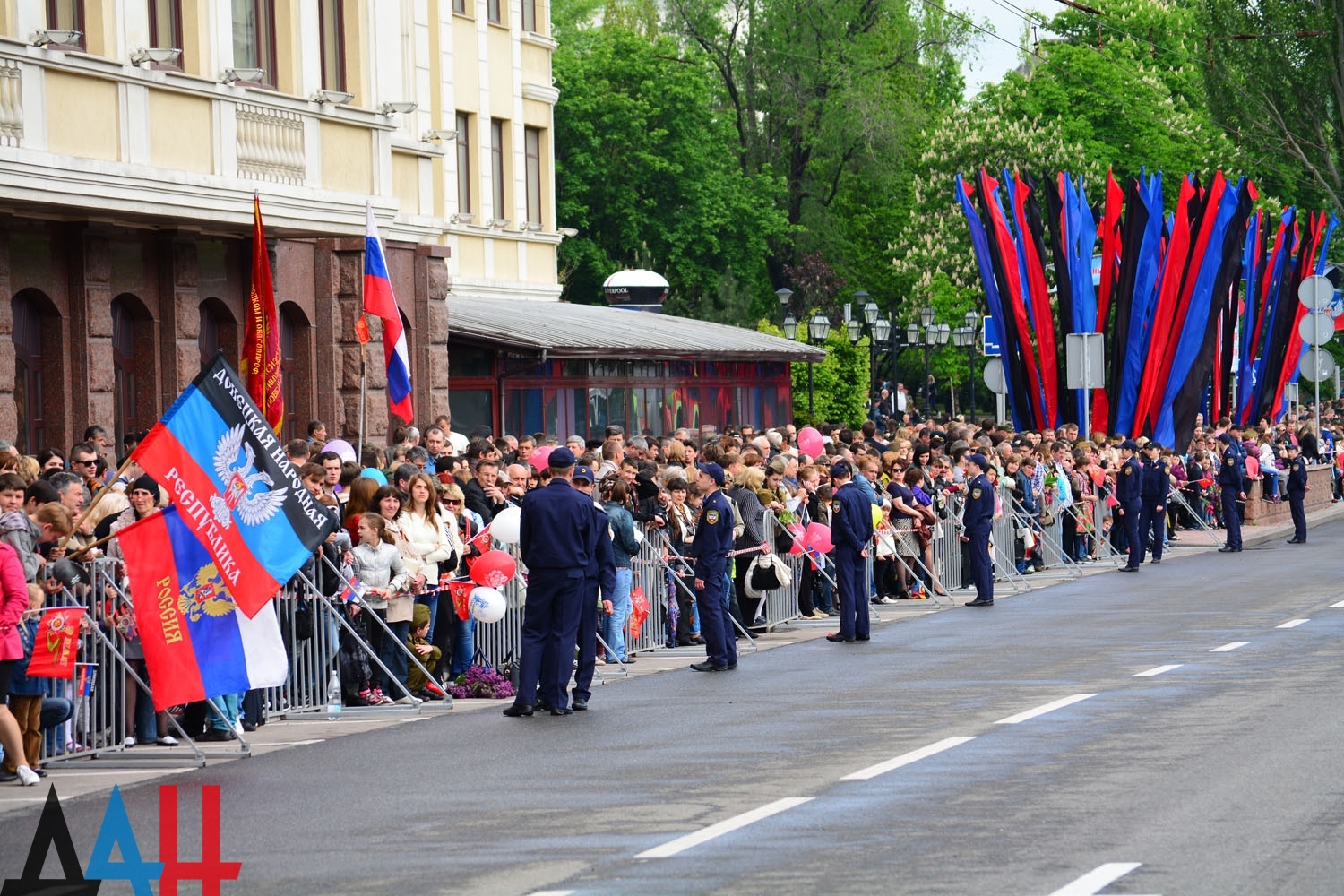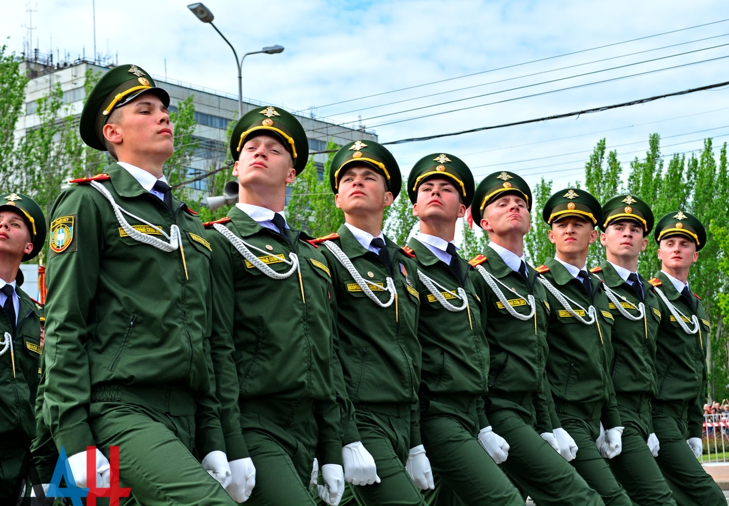 Военный парад в честь 71-й годовщины Победы в Великой Отечественной войне прошел сегодня в Донецке. Торжественным маршем по центральной улице столицы прошли военнослужащие, сотрудники МЧС и МВД, курсанты военных училищ.