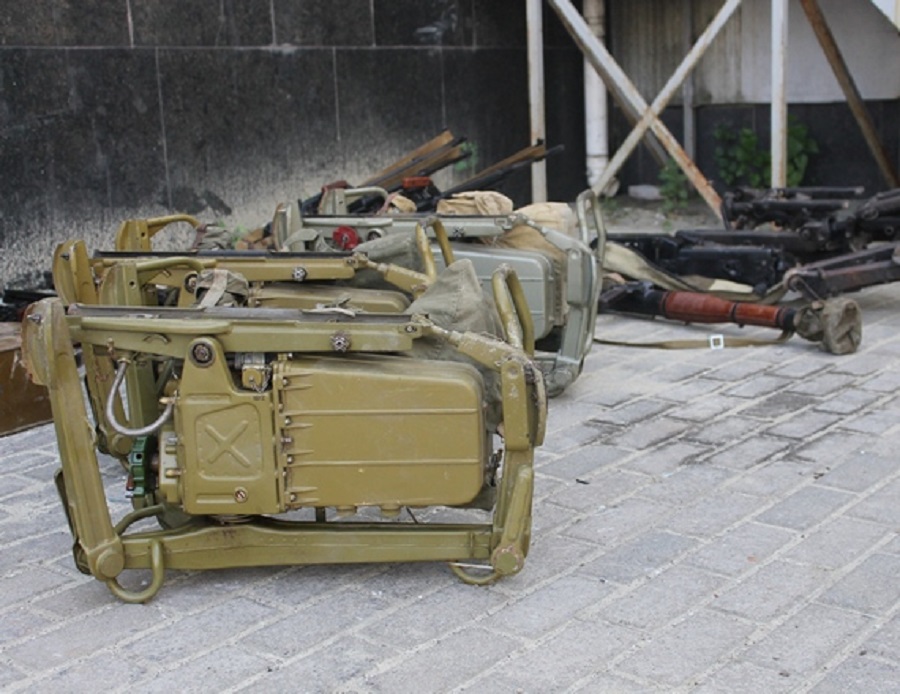 В тайнике обнаружено и изъято: автомат Калашникова, 11 пулеметов Калашникова, 7 одноразовых гранатометов, 3 противотанковых ракетных комплекса, 2 крупнокалиберных пулемета, автоматический станковый гранатомет, 3 миномета, 4 противотанковых гранатомета, значительное количество патронов различного калибра, гранатометных и минометных выстрелов.