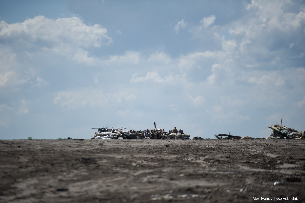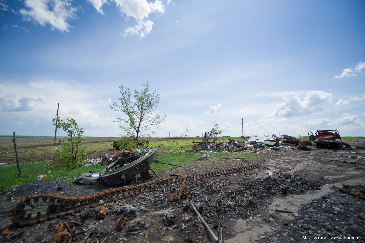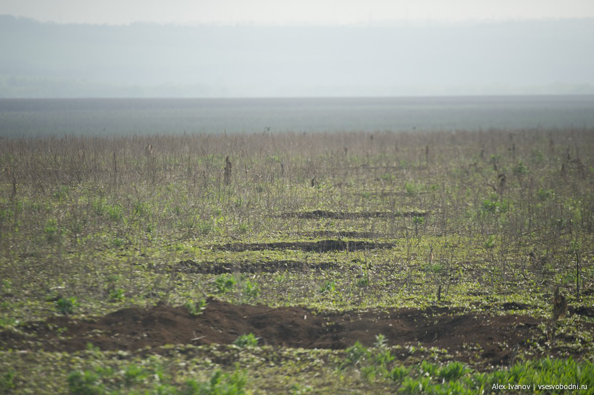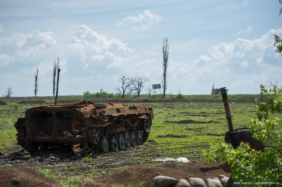 Вокруг поста поля перерыты взрывами артиллерийских снарядов и мин, усеяны ржавыми останками сожжённой бронетехники ВСУ, едва различимыми могилами экипажей украинских танков и бмп..."