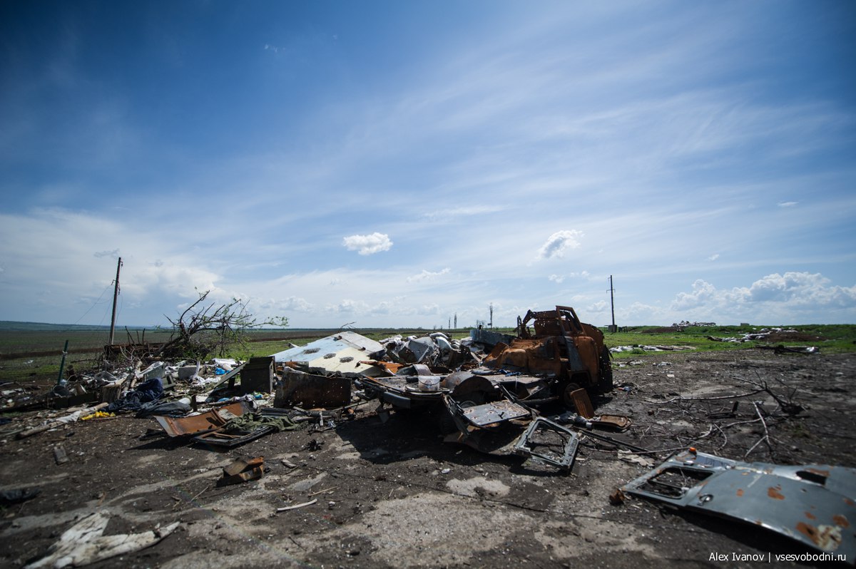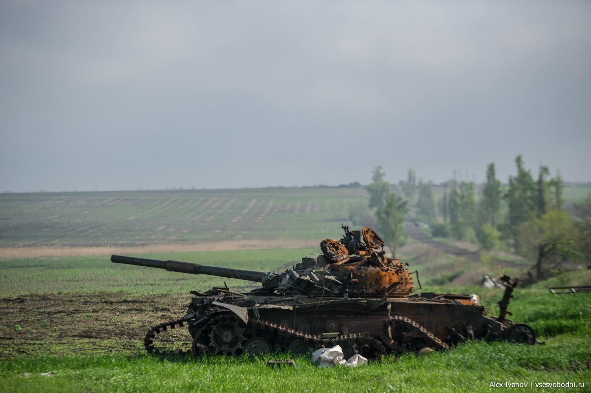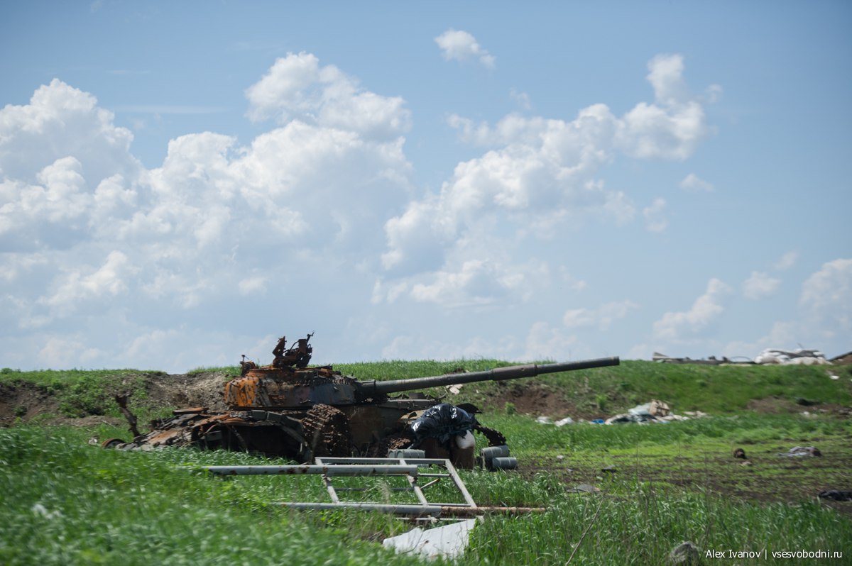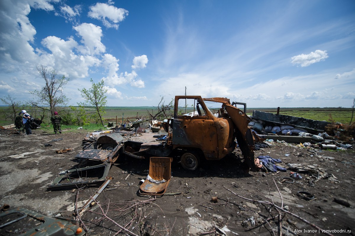 Вокруг поста поля перерыты взрывами артиллерийских снарядов и мин, усеяны ржавыми останками сожжённой бронетехники ВСУ, едва различимыми могилами экипажей украинских танков и бмп..."