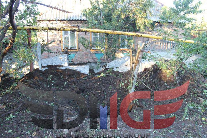 "Поселок Донецкий (ЛНР) снова подвергся артиллерийскому обстрелу со стороны ВСУ. В 23:00 28 июля и в 00:45 29 июля предположительно 120 мины упали на жилой сектор населенного пункта. Из-за немногочисленного населения поселка в разрушенных строениях и рядом никто не жил. Не смотря на отвод вооружения калибром менее 100 мм. украинская сторона не прекращает предпринимать попытки провокационных действий относительно подразделений народной милиции ЛНР. БТРО «Призрак», которые несут свою службу на передовых рубежах этого направления ответный огонь не открывали, соблюдая режим тишины."