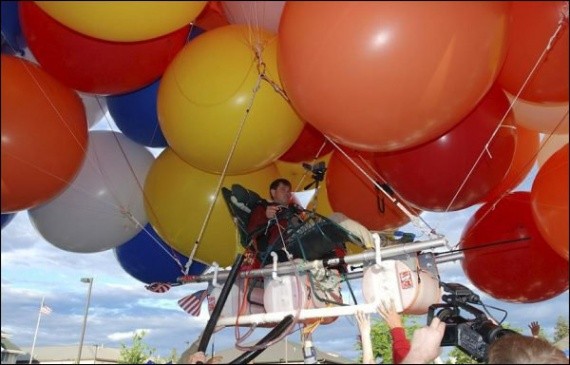 В 1982 году Ларри Уолтерс, пенсионер из Лос-Анджелеса решил осуществить давнюю мечту — полететь, но не на самолете. Он изобрел собственный способ путешествовать по воздуху.