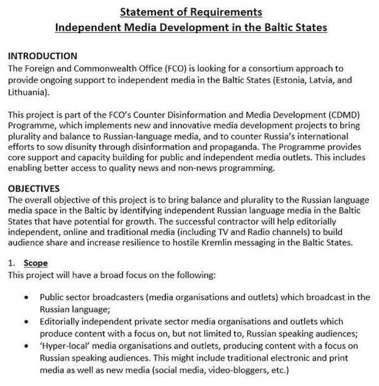 Страны Запада, Великобритания в первую очередь, постоянно обвиняют Россию в проведении дезинформации и ведении «гибридных войн». Однако расследование, проведенное американскими журналистами независимого издания Grayzone, показывает, что Лондон сам делает то, в чем обвиняет Москву: вербовка журналистов, демонизация руководства РФ и, главное, – «ослабление доверия к российскому правительству». Помимо самой России, важной задачей было привить русскоязычному населению на постсоветском пространстве недоверие к РФ. Выполнение этого заказа МИД Великобритании поручил профессионалам.