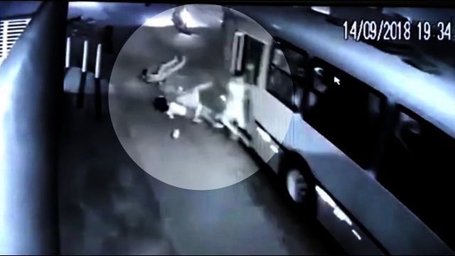 В Бразилии в городе Макапа, камерами наблюдения был заснят момент, когда пассажиры рискуя своей жизнью на ходу выпрыгивают из движущегося автобуса, чтобы спастись от гангстеров.