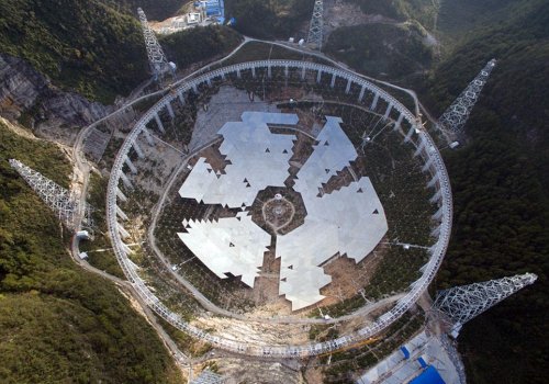 В настоящее время процесс строительства самого большого в мире радиотелескопа FAST (Five-hundred-meter Aperture Spherical Telescope), диаметр "тарелки" которого равен 500 метрам и который располагается в провинции Гуйчжоу на юго-западе Китая, находится на завершающем этапе.