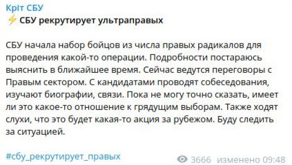 Кстати, первая информация о заброске националистических группировок в Беларусь появилась еще два года назад. Эту инфу "слил" украинский телеграм-канал "Крiт СБУ" ("Крот СБУ"). Он сообщил, что Служба безопасности Украины еще в 2019 году начала вербовку ультраправых активистов, имеющих белорусские корни либо родственников, проживающих в республике.