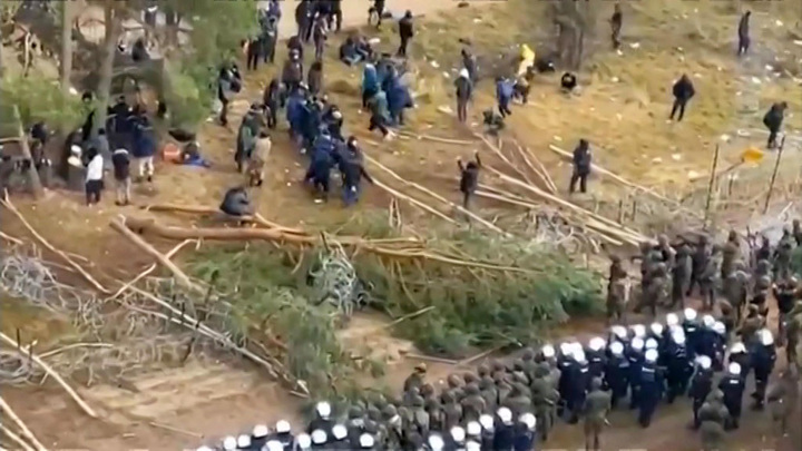 Польша и Белоруссия стягивают военных, мигранты сломали заграждение, слышны выстрелы, беженцы более 300 раз штурмовали границу