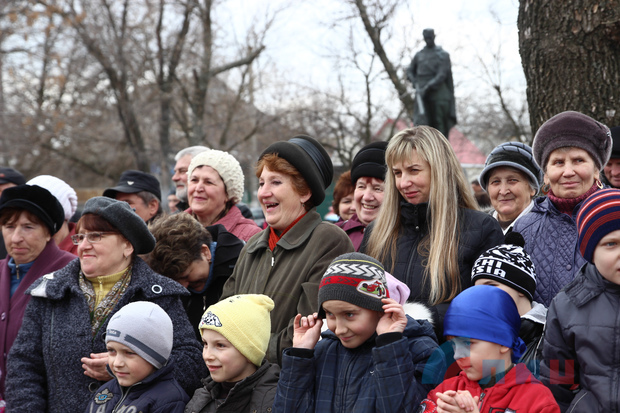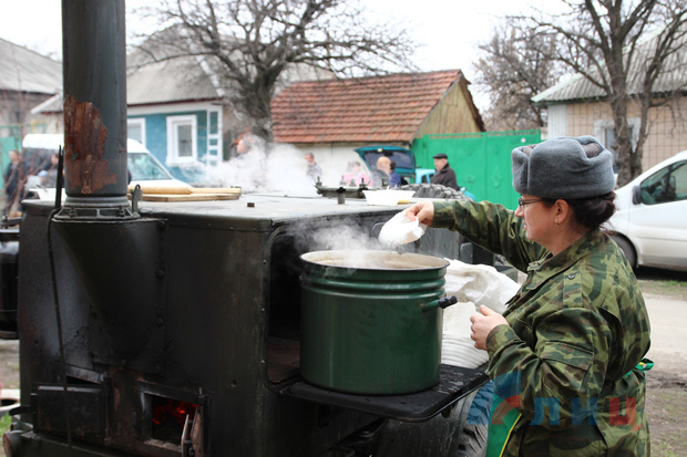Для жителей прифронтового поселка была организована полевая кухня, различные конкурсы и праздничный концерт. Также селяне получили сладкие подарки от Луганского отделения Красного Креста.