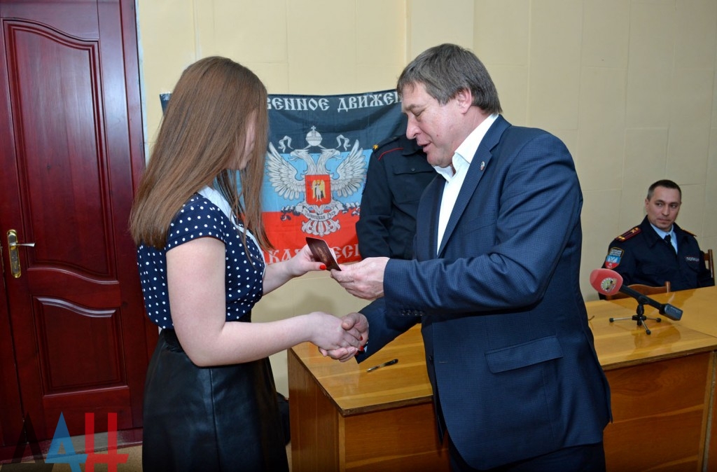 «Сегодня радостное событие — наши дети становятся взрослыми и получают паспорта Донецкой Народной Республики, — обратился к собравшимся глава района. – Я надеюсь, что вы с гордостью будете носить этот паспорт. Лично от администрации хочу вас всех поздравить».