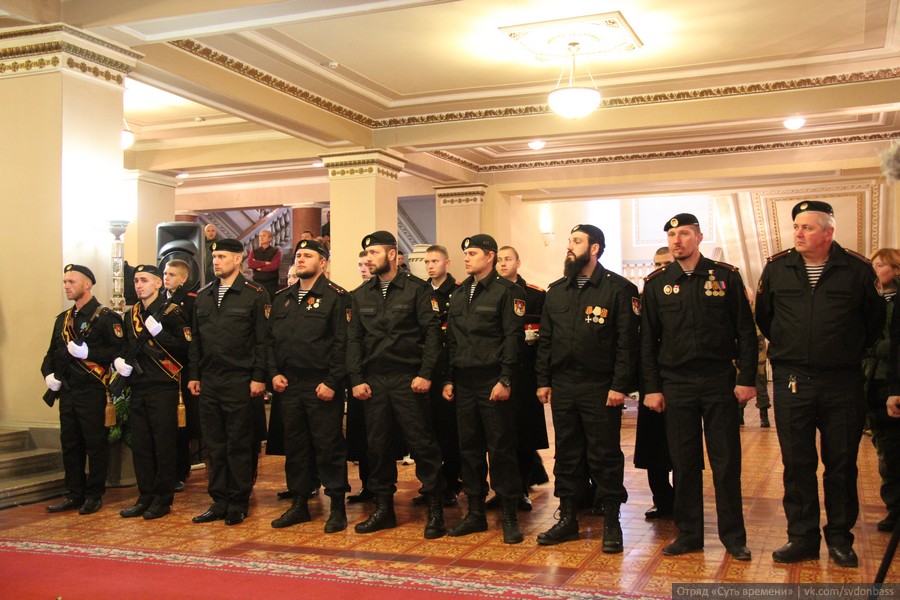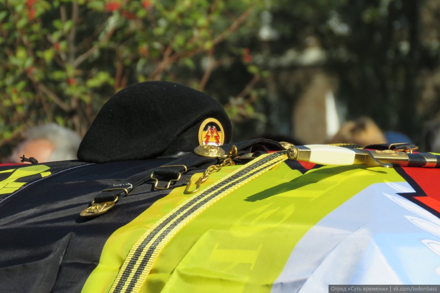 Перед гробом несколько человек в военной форме и с медалями на груди вынесли флаги Донецкой народной республики – такие же, как те, что сегодня приспущены по всему Донецку и за его пределами. Сам гроб был богато украшен цветами и накрыт флагом «Спарты» – того самого подразделения, в котором сражался Моторола, превратившись за последние два года военных действий на востоке Украины в настоящую легенду.