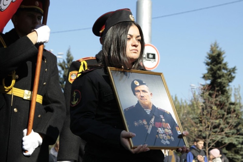 "В Донецке тысячи людей простились с героем народного ополчения ДНР Моторолой. На церемонии прощания глава республики Александр Захарченко не смог сдержать слез, а вдова Моторолы Елена Павлова несла его портрет, возглавляя траурную процессию. Она надела форму российской морской пехоты (сам Моторола, как известно, служил в спецназе ВМФ)», - информирует «МК».
