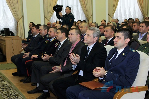 "Вы защищаете наш народ ЛНР от преступности и всяких бед. Уверенность в завтрашнем дне Луганской Народной Республики зависит от качества выполненной вашей работы", - добавил он.